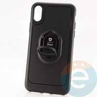 Накладка силиконовая iFace на Apple IPhone Xs Max с металлической пластиной с кольцом черная
