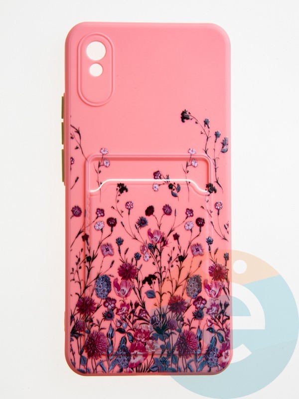 Накладка силиконовая Summer с кардхолдером для Xiaomi Redmi 9A розовая