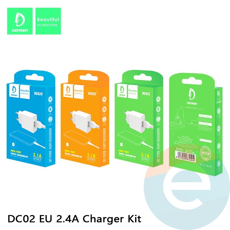 СЗУ Denmen DC02T DUAL USB 2.1A + кабель Type-C белое