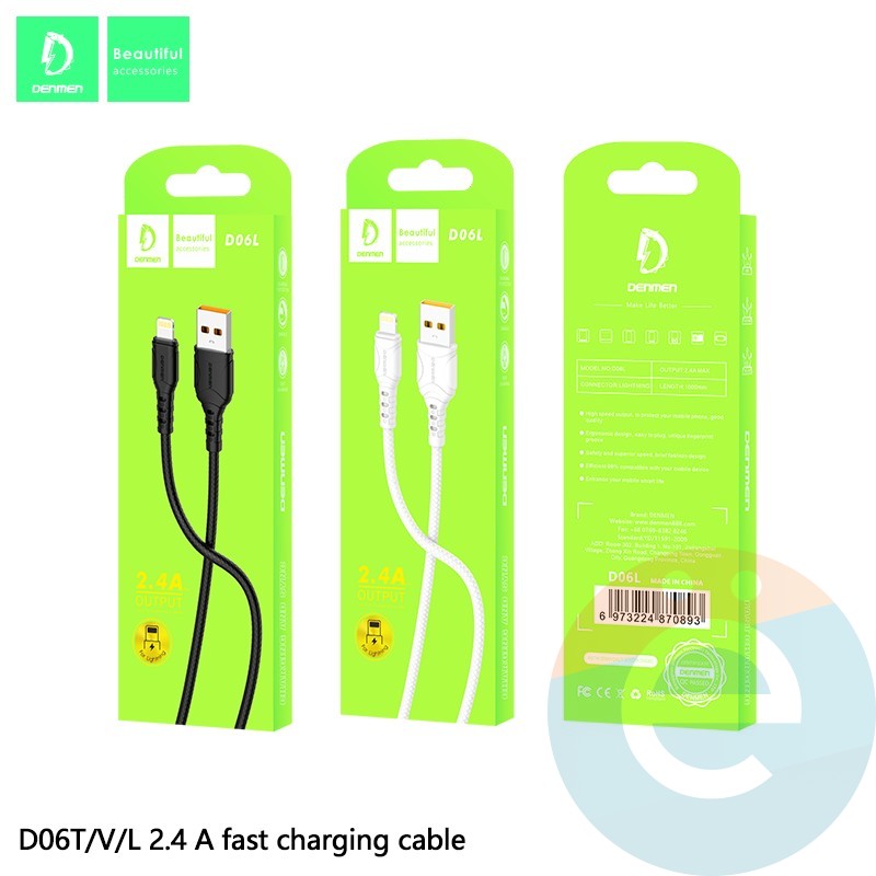 USB кабель Denmen D06L на Lightning 2.4A 1м черный