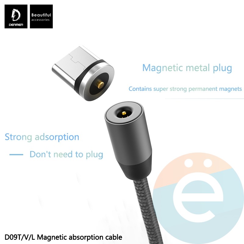 USB кабель Denmen D09V магнитный нейлоновый на Micro USB 1м золотистый